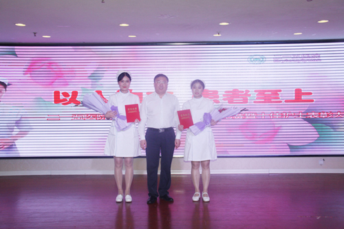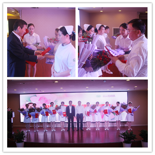 院长苏庚洵、党委书记李俊海为十佳护士颁奖。