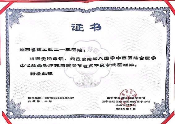 近日,由国家中西医结合医学中心、国家远程医疗与互联网医学中心联合主办,中日友好医院承办的国家中西医结合医学中心“股骨头坏死与髋关节发育不良专病医联体”成立大会在北京隆重举行。作为西北地区骨科专业中坚力量,陕西省核工业二一五医院入选首批成员单位。关节外科周百刚主任医师、赵江博主治医师与来自全国19个省份、56家医疗机构的数百位骨科专家共襄盛会。这标志着我院骨科实现学科建设新跨越,在关节外科诊疗领域获国家级平台认可,将为区域骨关节疾病诊疗水平提升注入新动能。