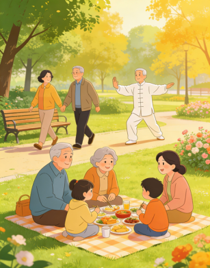 鼓励父母每天散步、打太极拳,适当活动能促进肠胃蠕动,也让心情更舒畅。