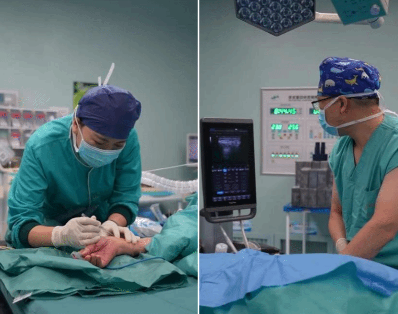 麻醉医生高鹏全程主导监护与调控。团队采用“超声引导下神经阻滞”这一精准技术,在可视化的辅助下,将局麻药精准注入目标神经周围,从源头上为患者提供了强效的术后镇痛。这显著减少了全身麻醉药物的用量,降低了对呼吸、循环的抑制。