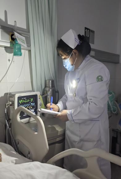 为解决这一问题,护士长组织科室护士展开讨论,最终确定了容易操作且短期内可执行的“提灯女神”方案。夜班护士巡视病房时,胸前佩戴散发和煦暖光的夜灯,既照亮了需要查看的患者,又不至于灯光耀眼影响睡眠。忙碌时,亮起的灯光也是“护士在这里”的指引。灯在哪里亮,护士就在哪里,这盏爱心小夜灯可以定位值班护士,方便患者和家属在第一时间找到护士,大大提高了患者的满意度。