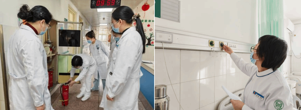 在设施与消防安全方面,检查组对科室水、电、暖系统,医疗设备电源及应急照明进行了细致排查,及时整改用电隐患,保障设施平稳运行。全面检查灭火器材、疏散通道及重点区域火灾防控措施,现场抽查医护人员消防应急能力,进一步强化全员消防安全意识,提升应急处置水平。