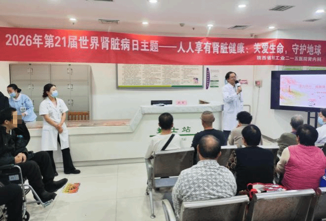 2026年3月12日是第21个“世界肾脏日”,主题为“人人享有肾脏健康——关爱生命,守护地球”。这一主题首次将人类肾脏健康与地球生态保护深度绑定,倡导构建“人肾共安、人与自然和谐共生”的健康新格局。为积极响应主题号召,陕西省核工业二一五医院肾内科组织举办健康知识讲座、血管通路普查及有奖竞猜等系列活动,以实际行动助力透析患者改善生活质量,筑牢生命健康防线。